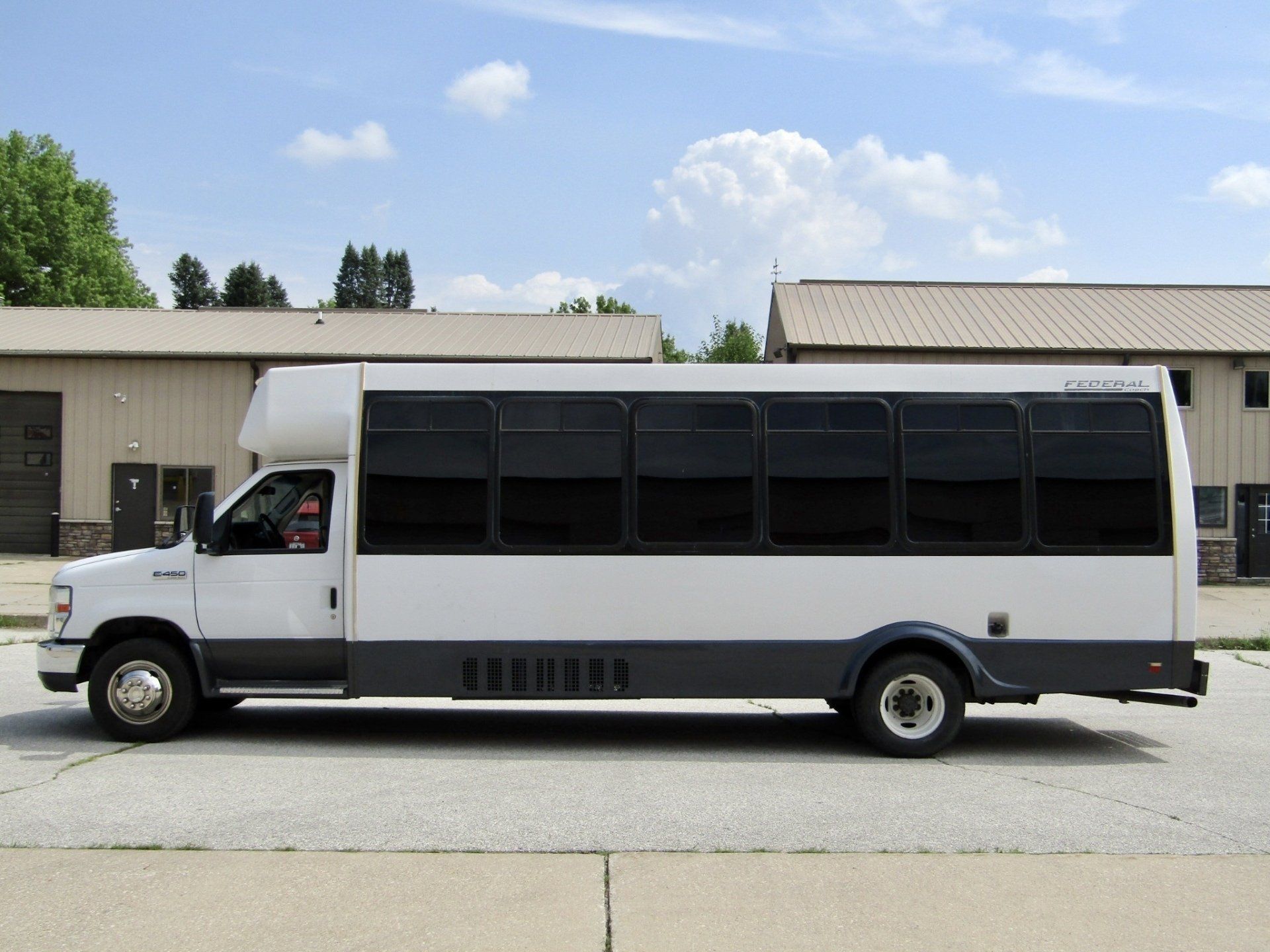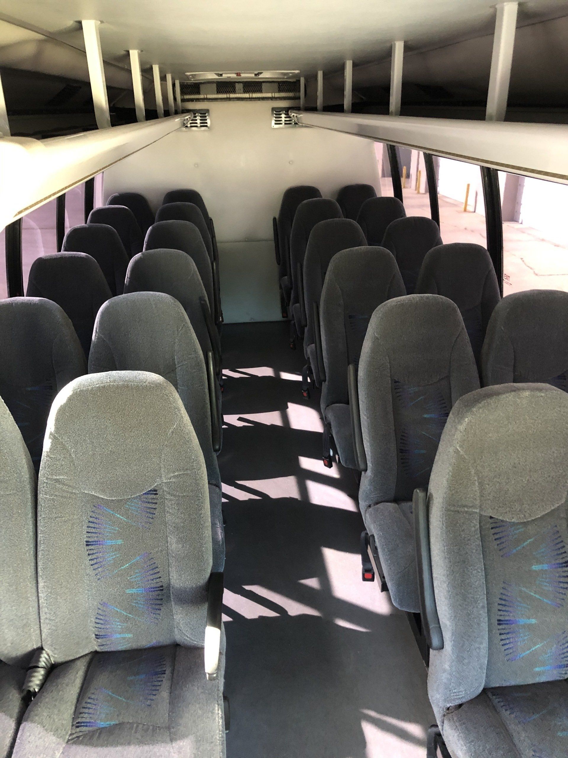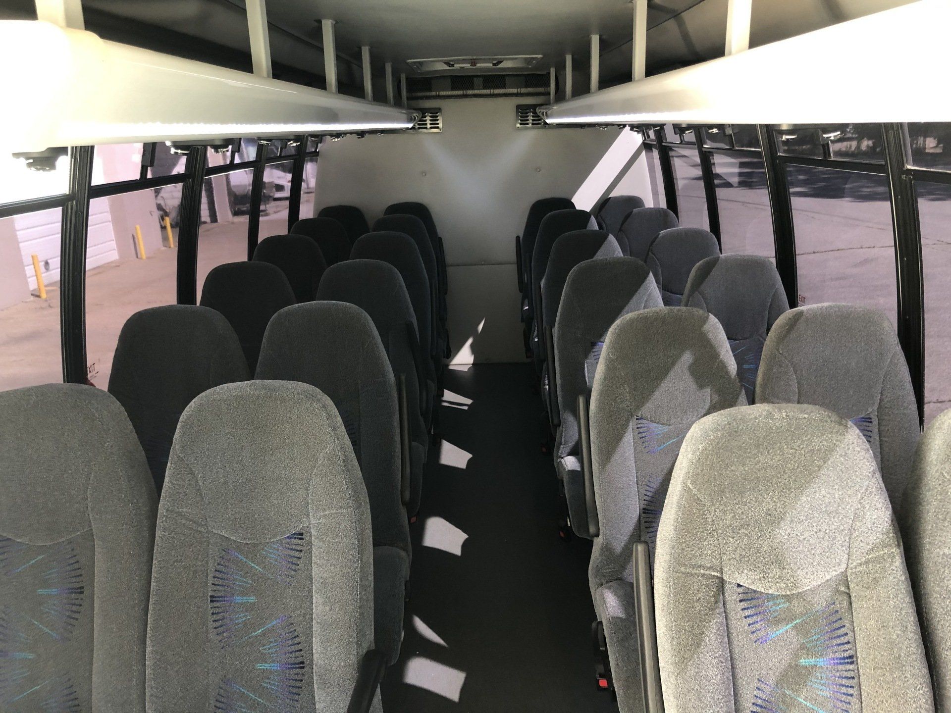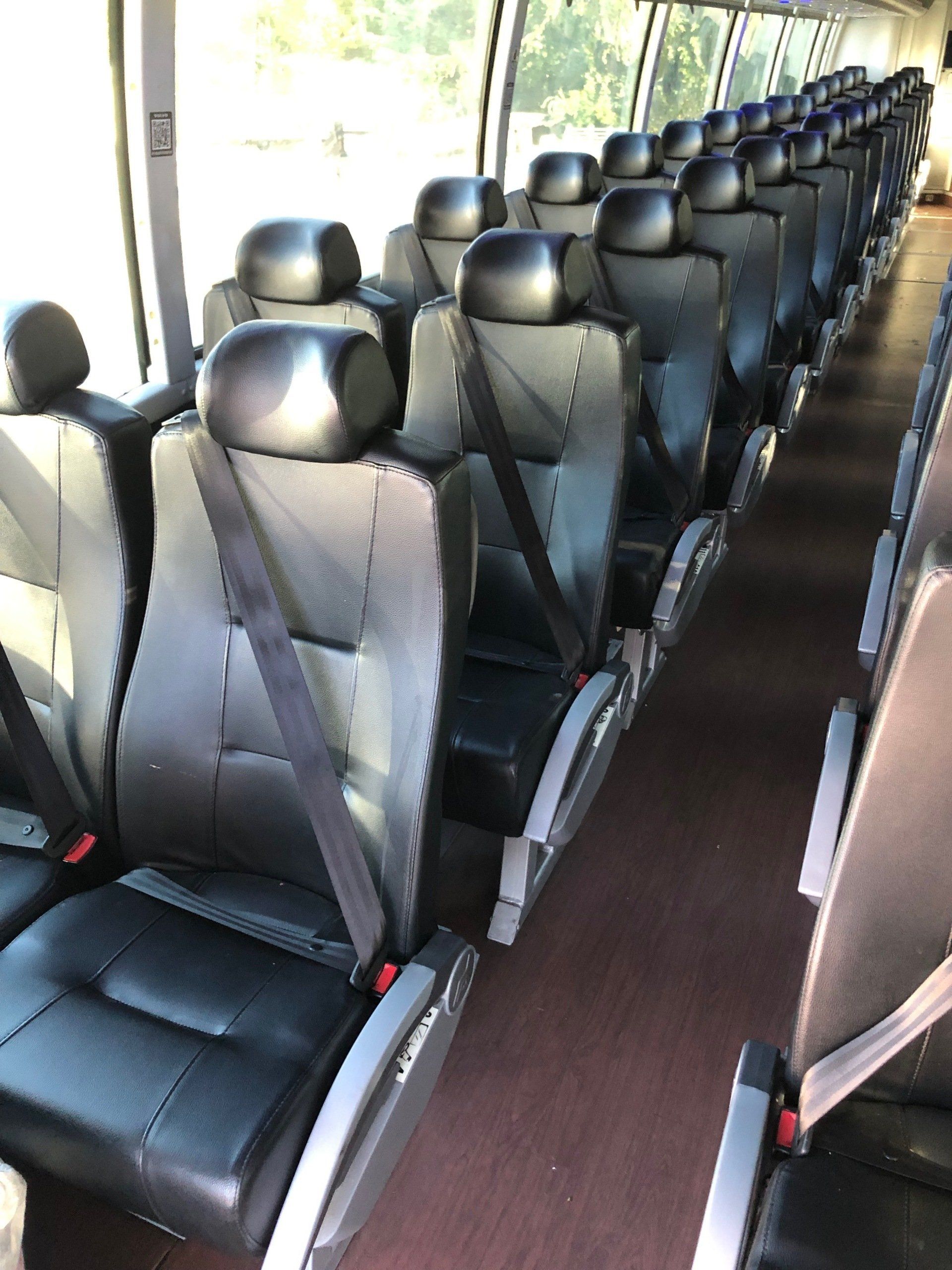 22 Passenger minibus with conversation seating. Can be switched to 24 passenger forward-facing seats if the customer would prefer.